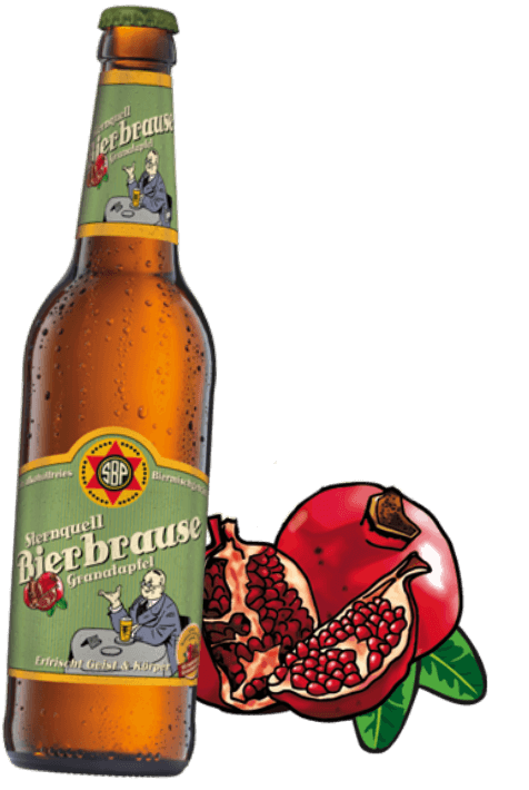 Sternquell Bierbrause Granatapfel enthält einen ernährungsphysiologisch unwirksamen Rest von weniger als 0,5 Vol.-% Alkohol.