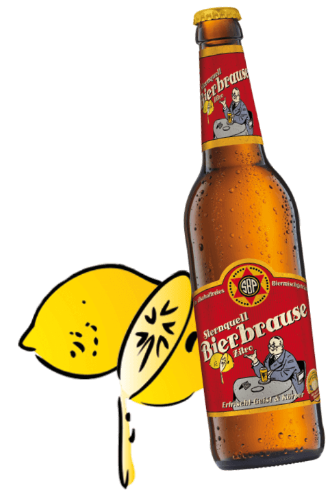 Sternquell Bierbrause Zitro enthält einen ernährungsphysiologisch unwirksamen Rest von weniger als 0,5 Vol.-% Alkohol.