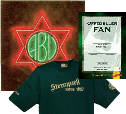 Wir sind das Sternquell des Vogtlandes – und unser Sternquell Pilsner ist das meistgetrunkene Pils der Region. Zeigen auch Sie Ihre Liebe und Leidenschaft für unser Sternquell und werden Sie Mitglied im Sternquell-Fanclub. Ihre Vorteile: Jeder Sternquell-Fan erhält seine persönliche Fan-Ausrüstung sowie die neuesten Sternquell-News frei Haus und sichert sich exklusive Konditionen in unserem Sternquell-Fanshop.