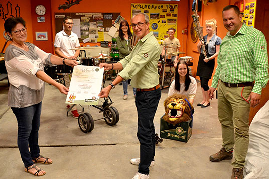 Auerbach (09.07.2020). „Wir benötigen dringend neue Instrumente.“ Mit diesen Worten bewarb sich der 1. Vogtländische Schalmeienzug Auerbach bei „Sternquell hilft“. Produktmanager Thomas Münzer und Gebietsverkaufsleiter …