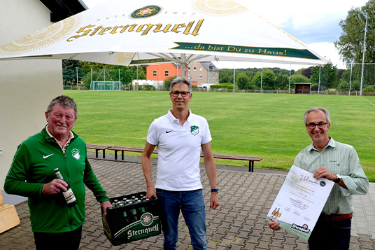Grünbach-Falkenstein (14.07.2020). Fußball ohne Tore? Unmöglich! Damit die Damenmannschaften der Spielvereinigung Grünbach-Falkenstein wieder ausgelassen dem Ballsport frönen können, spielte ihnen „Sternquell hilft“ ganze 600 Euro …