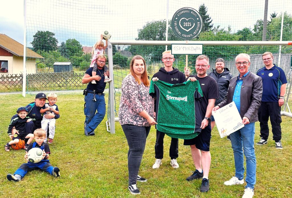 Bt: Der “Sternquell hilft”-Juryvorsitzende Thomas Münzer (2. rechts) überbrachte dem TSV 1905 Daßlitz e.V. persönlich die Förderurkunde.