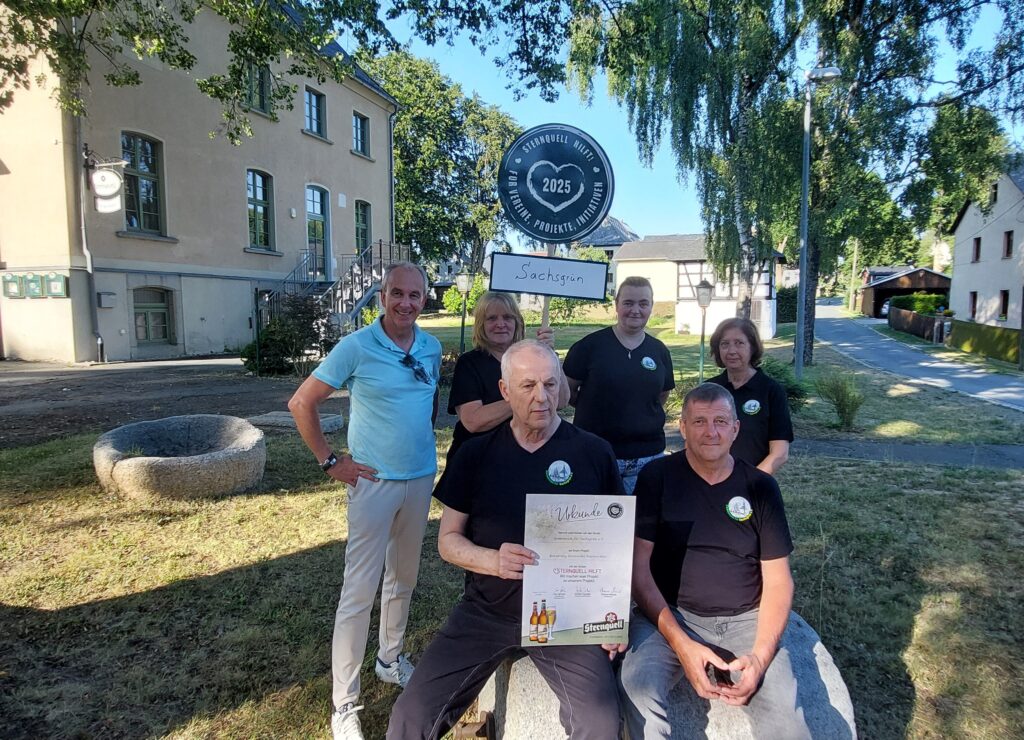 Sechs Jahre gibt es ihn erst, diesen kleinen Verein. 19 Mitglieder zählt der “Gemeinsam für Sachsgrün e.V.” Der Ortsteil Sachsgrün gehört zur Gemeinde Triebel. Hier ist das Vogtland besonders schön und idyllisch. Ringsum finden die Ruhesuchenden verschlafene Natur. Ganz viele Wandersleut’ spazieren entlang am “Grünen Band”, wie man den ehemaligen Grenzstreifen nennt. Hier war Deutschland einst zwischen Ost und West getrennt. “Heute seid ihr einer dieser wunderbaren Orte, wo unser schönes Land die Menschen zusammenführt”, wusste Sternquell-Marketingleiter Thomas Münzer bei seinem Vereinsbesuch um die Bedeutung dieses kleinen Dorfes.